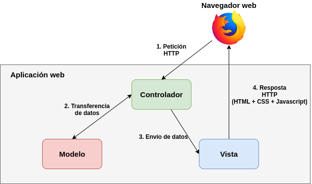 - Vista: define como se deben de mostrar os datos da aplicación nun formato adecuado para o usuario final e permite a este interactuar coa aplicación. Nesta arquitectura a vista serían os documentos HTML.