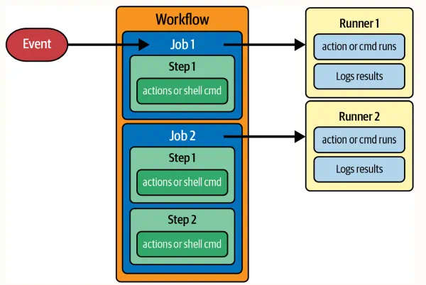 A continuación, preséntanse os principais compoñentes de GitHub Actions: