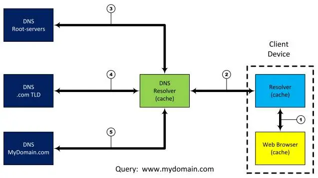 Ante unha consulta, se un servidor de nomes resolutor pode obter unha resposta da caché, non realiza a consulta a outro servidor DNS. Polo tanto, un resolutor pode obter a resposta doutros servidores DNS ou da caché, sendo esta última moito máis rápida. Un resolutor devolve unha resposta de autoridade se a consulta se realiza a outros servidores DNS, ou pode non ser de autoridade se a resposta a obtén da caché.