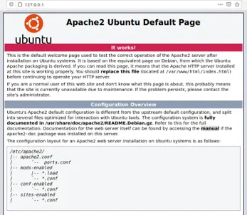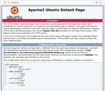 Supoñendo que o dominio do servidor é localhost, podemos comprobar que o servidor web se está executando correctamente se abrimos un navegador web e accedemos a http://localhost ou a http://127.0.0.1.