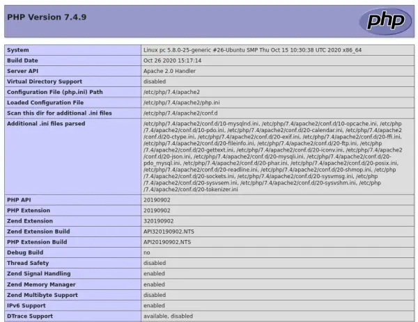 phpinfo();