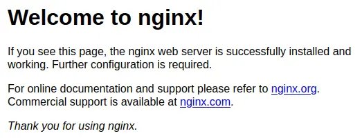 Outra opción é acceder á páxina de destino de NGINX utilizando o nome de dominio do servidor ou a dirección IP pública no teu navegador. Se o programa se instalou satisfactoriamente, verás a seguinte mensaxe: